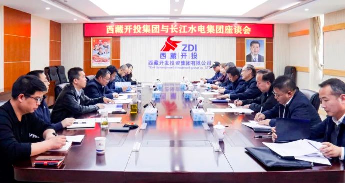 10月30日,西藏開(kāi)投集團(tuán)黨委書(shū)記、董事長(zhǎng)祁騰武與長(zhǎng)江水電集團(tuán)黨委書(shū)記、董事長(zhǎng)張華忠在拉薩舉行座談,西藏開(kāi)投集團(tuán)黨委專職副書(shū)記、董事羅布次仁,集團(tuán)黨委委員、董事、總會(huì)計(jì)師陳焱罡,長(zhǎng)江水電集團(tuán)黨委委員、副總經(jīng)理張金鋒等參加座談。