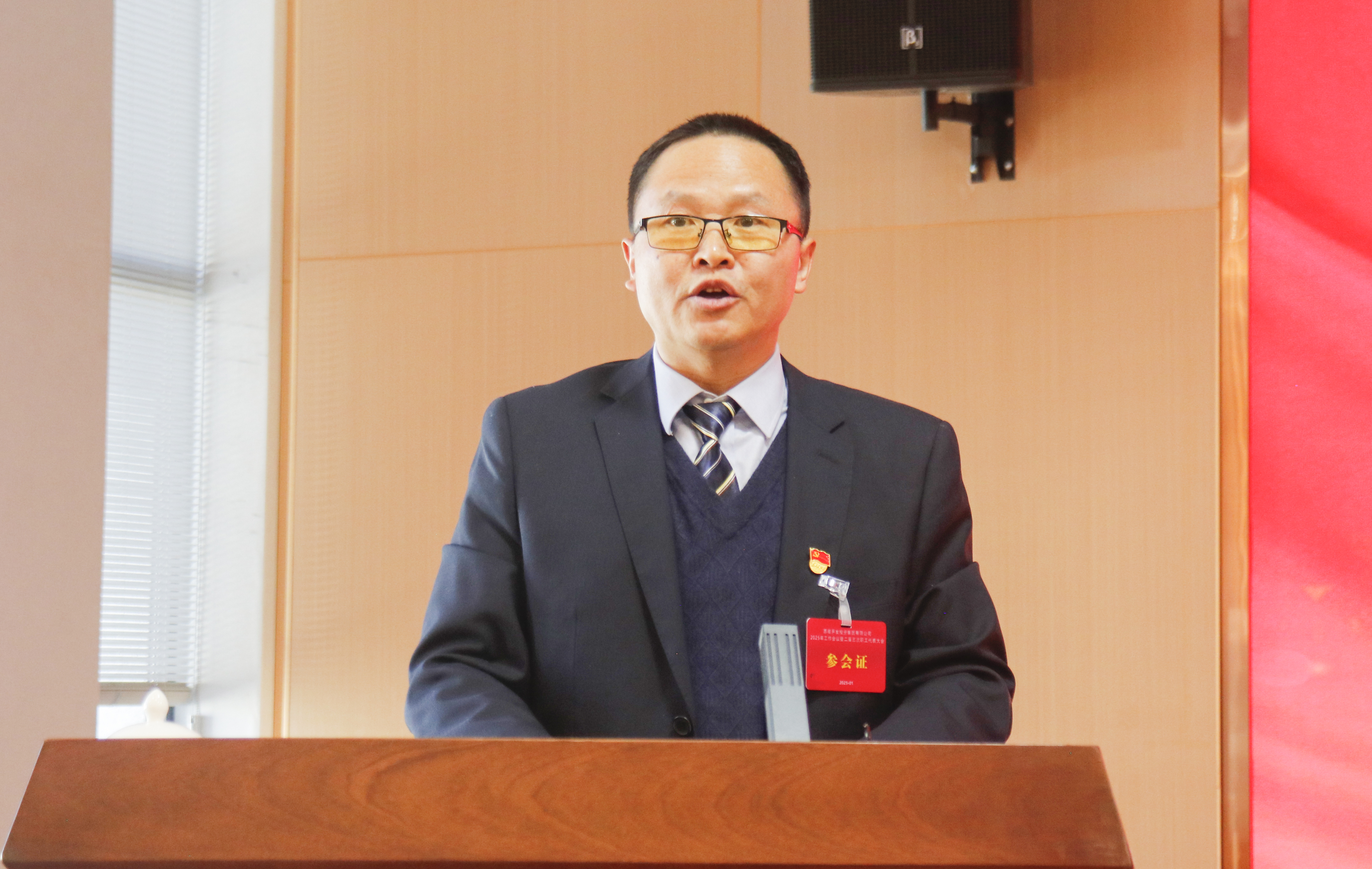羅布次仁作集團工會工作報告。邊巴次仁 攝