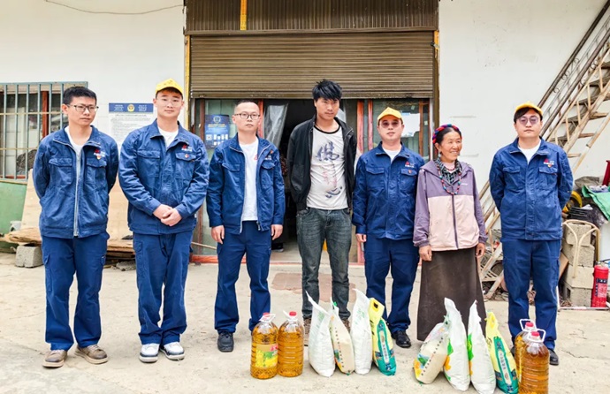 活動現場,覺巴黨支部同當地政府配合,為曲登鄉兩戶困難群眾送上大米、面粉、食用油等生活物資,詳細了解他們身體狀況、家庭情況,并鼓勵他們堅定信心、努力向上生活。