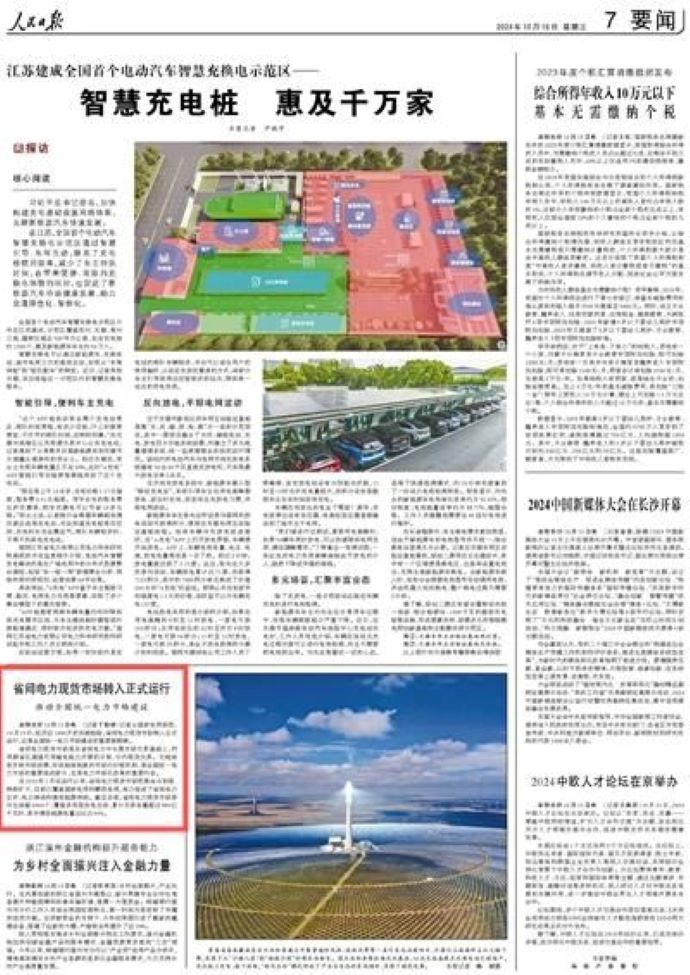人民日報:省間電力現貨市場轉入正式運行 推動全國統一電力市場建設