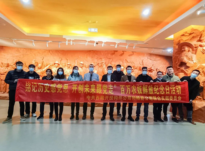 3月31日,中共西藏開投構(gòu)件公司和暢能公司聯(lián)合支部委員會組織全體在藏職工參觀西藏百萬農(nóng)奴解放紀念館,開展西藏百萬農(nóng)奴解放64周年宣傳紀念活動。