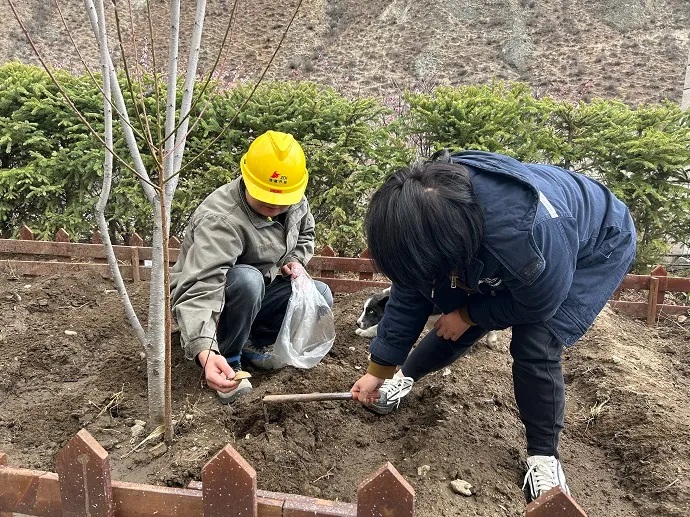 4月3日,嘎堆水電公司黨支部組織黨員干部職工開(kāi)展“引領(lǐng)綠色行動(dòng),共筑生態(tài)家園”主題種植活動(dòng)。