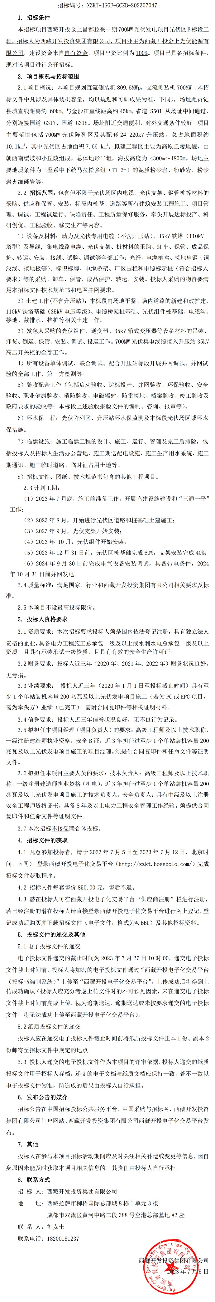 光伏區B標段工程招標公告