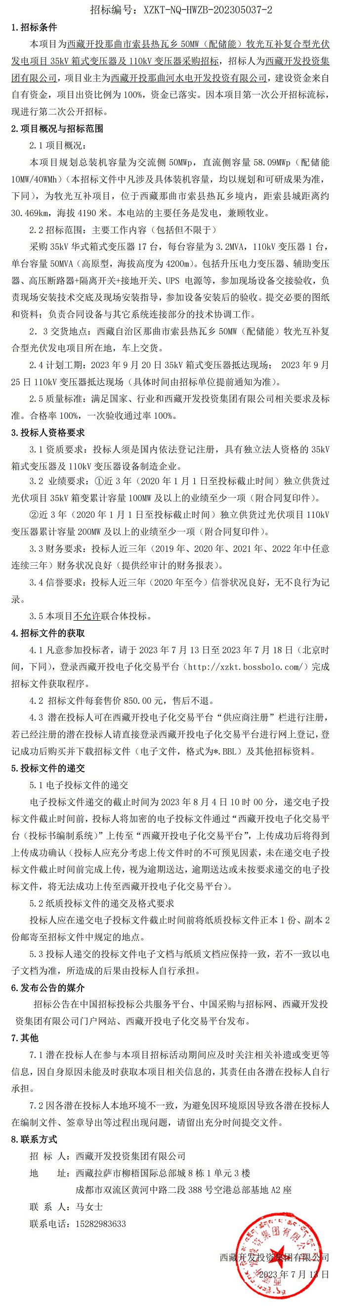 西藏開投那曲市索縣熱瓦鄉50MW(配儲能)牧光互補復合型光伏發電項目35kV箱式變壓器及
