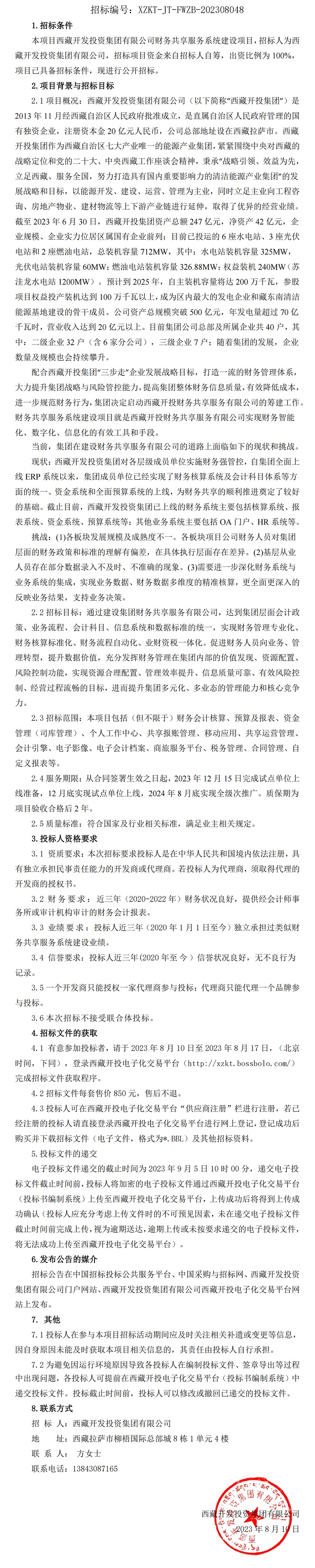 西藏開發(fā)投資集團(tuán)有限公司財務(wù)共享服務(wù)系統(tǒng)建設(shè)項目