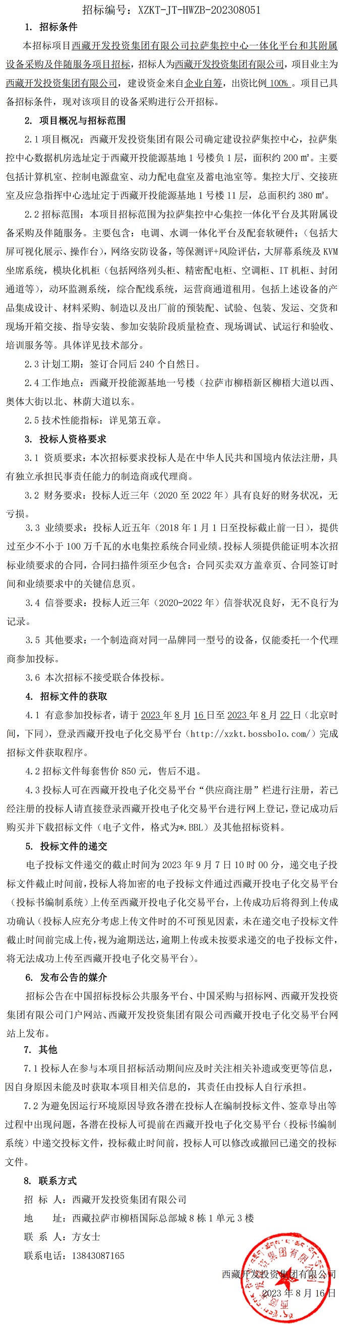 西藏開發投資集團有限公司拉薩集控中心一體化平臺和