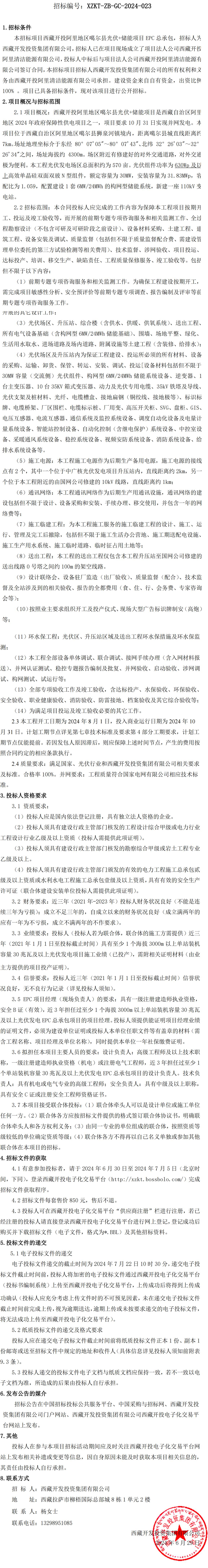 西藏開投阿里地區噶爾縣光伏+儲能項目EPC總承包招標公告