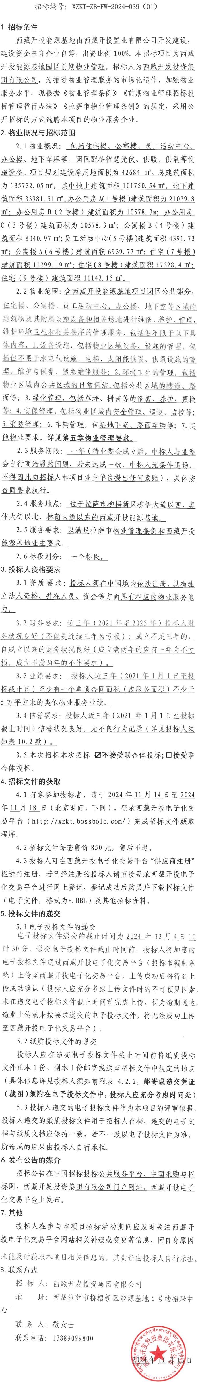 西藏開投能源基地園區(qū)前期物業(yè)管理招標(biāo)公告 (第二次 )