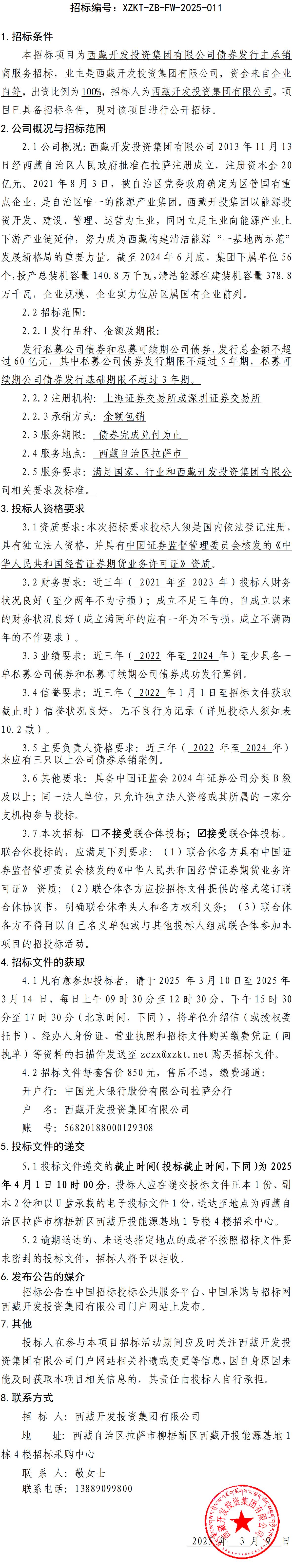 西藏開發(fā)投資集團(tuán)有限公司債券發(fā)行主承銷商服務(wù)招標(biāo)公告